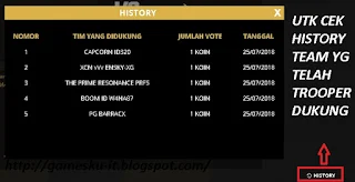 Apabila kalian lupa untuk mengecek berapa koin yang kalian gunakan untuk mendukung tim, bisa langsung dicek di History kalian
