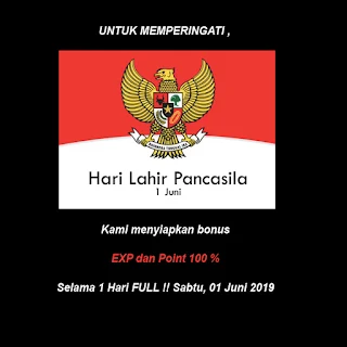 Untuk memperingati hari lahirnya Pancasila, troopers yang bermain pada tanggal 1 Juni 2019 akan mendapatkan Bonus Exp 100 %