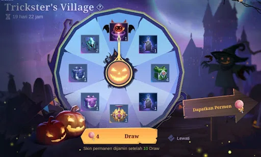 untuk mendapatkan yang nantinya dapat kamu gunakan untuk memutar wheel di Event Halloween MLBB 2023.Setiap tahun, Mobile Legends merilis berbagai skin Halloween baru yang sangat kreatif dan menarik. Pemain dapat membeli skin-skin ini selama periode Halloween atau menggunakan item seperti skin fragment atau magic dust untuk mendapatkannya. Skin Halloween tidak hanya memberikan tampilan baru untuk hero Anda, tetapi juga meningkatkan pengalaman bermain selama musim Halloween di Mobile Legends.